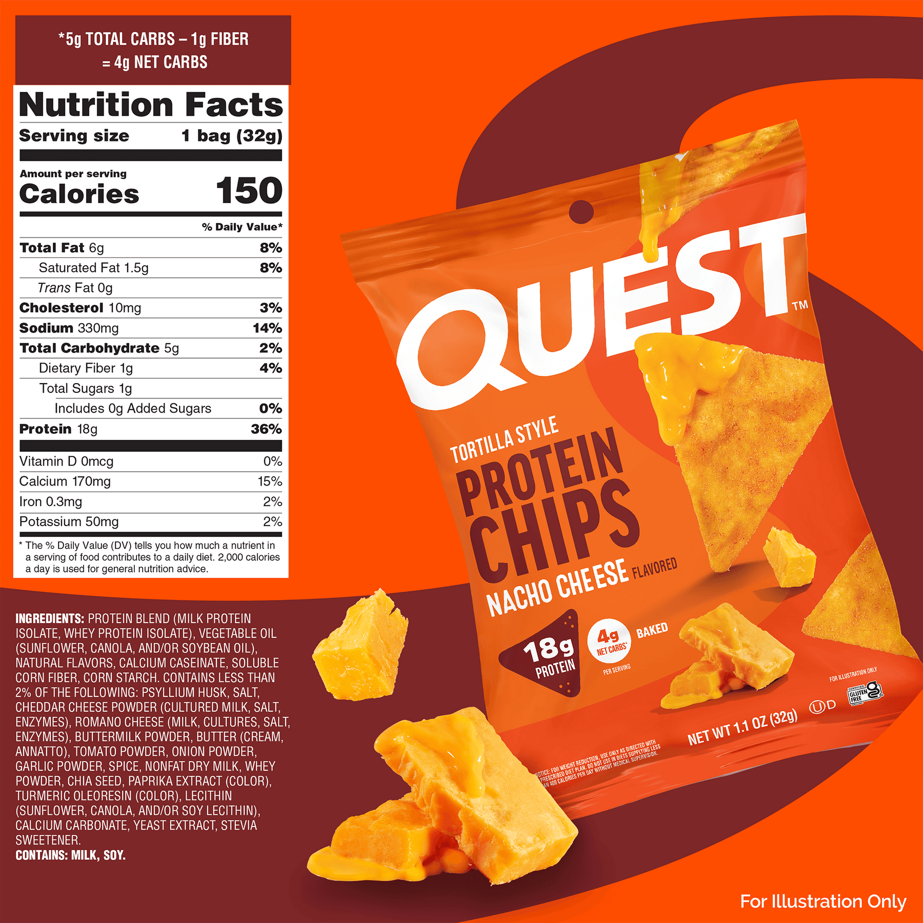INGREDIENTS: PROTEIN BLEND (MILK PROTEIN ISOLATE, WHEY PROTEIN ISOLATE), VEGETABLE OIL (SUNFLOWER, CANOLA, AND/OR SOYBEAN OIL), CALCIUM CASEINATE, CORN STARCH, NATURAL FLAVORS, SOLUBLE CORN FIBER, PSYLLIUM HUSK. CONTAINS LESS THAN 2% OF THE FOLLOWING: SALT, CHEDDAR CHEESE POWDER (CULTURED MILK, SALT, ENZYMES), ROMANO CHEESE (MILK, CULTURES, SALT, ENZYMES), BUTTERMILK POWDER, BUTTER (CREAM, ANNATTO), TOMATO POWDER, ONION POWDER, GARLIC POWDER, SPICE, NONFAT DRY MILK, WHEY POWDER, CHIA SEED, PAPRIKA EXTRACT (COLOR), TURMERIC OLEORESIN (COLOR), LECITHIN (SUNFLOWER, CANOLA, AND/OR SOY LECITHIN), CALCIUM CARBONATE, YEAST EXTRACT, STEVIA SWEETENER.